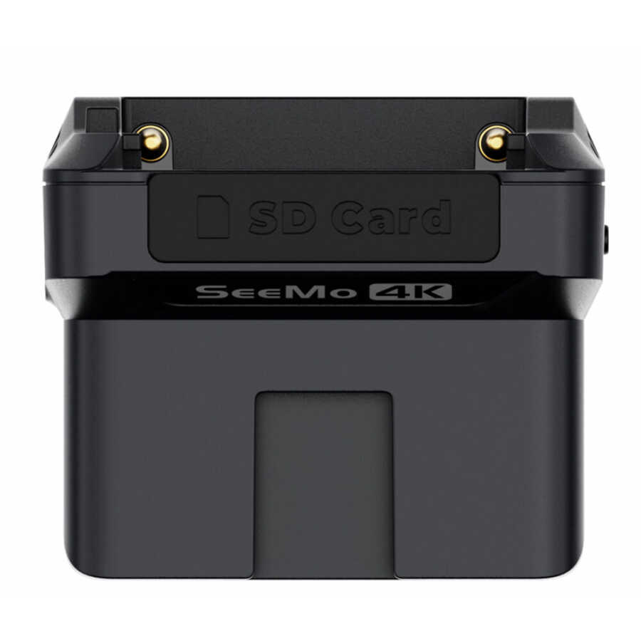Dahili SD kart okuyucu sayesinde, isteğe bağlı bir bellek kartıyla iPhone'unuz ve SeeMo 4K arasında sorunsuz bir şekilde dosya aktarabilirsiniz. Daha sonra bu SD kartı, Wi-Fi veya Bluetooth ile uğraşmaya alternatif olarak post-processing, yedekleme ve aktarım için bir dizüstü bilgisayarda kullanabilirsiniz.