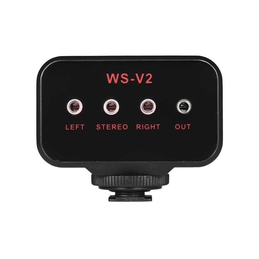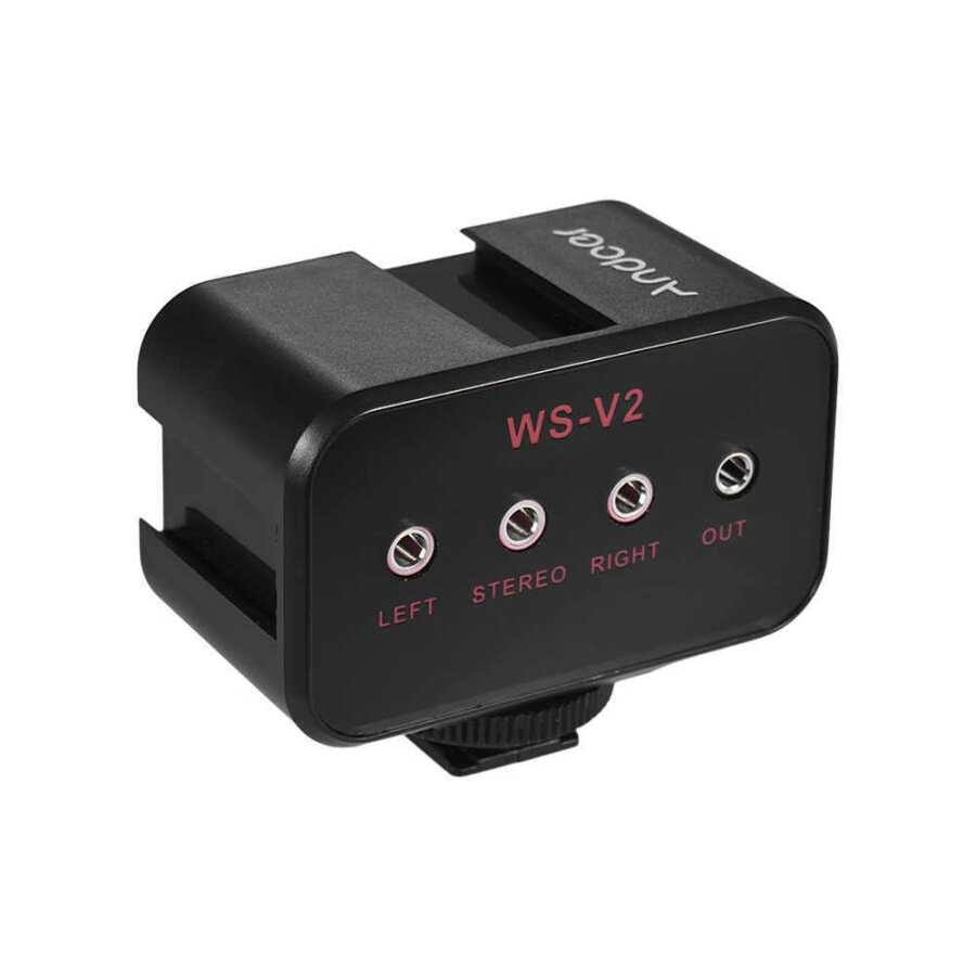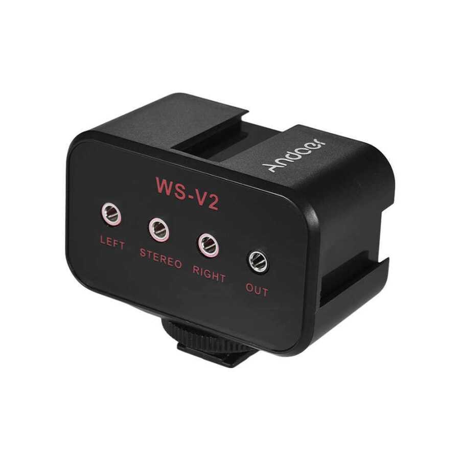 Andoer WS-VS, herhangi bir DSLR kamera veya video kamera ile video çekmek için 2 kanallı bir ses adaptörüdür. Bazen mikrofon tarafından doğrudan alınan ses kayıt ihtiyaçlarımızı karşılamayabilir. Ve bu ses adaptörü, ses efektini kontrol etmemize veya sol / sağ tek kanallı sesi 2 kanallı stereoya dönüştürmemize yardımcı olabilir.