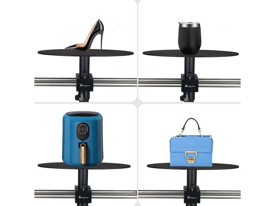 Ürün çekimi için video üretimi yapmak için 360 derece dönen PSP03 döner çekim standı ile tanışın. Dönen çekim standı, üzerinde 22 kg'a kadar nesneyi destekleyebilir ve döner tabla yüzeyinin çapı 12.6in / 32cm'dir. Meyveler, yiyecekler, içecekler, çantalar, lokumlar, makyaj malzemeleri, mücevherler, oyuncaklar, küçük bitkiler vb. gibi ürün çekimleri için uygundur. Bu standın döner kamera sürgüsü, fotoğraf ve video amaçlı hem saat yönünde hem de saat yönünün tersine dönüşü destekler. 360 derece çekim standı için tüm parçalar kullanıma hazırdır, kullanım kılavuzu üzerindeki kurulum talimatlarını izleyerek sadece birkaç adımda kurulumunu tamamlayabilirsiniz.