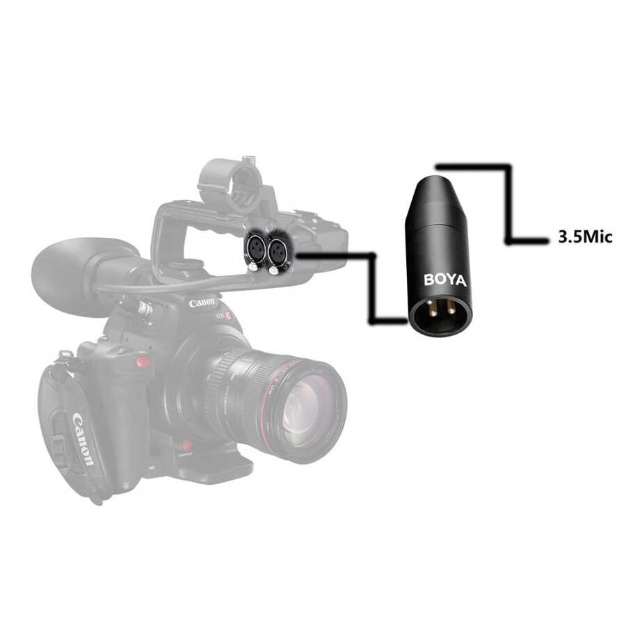BOYA 35C-XLR Adaptör 3.5mm mini jak girişini erkek XLR çıkışına dönüştürür, mini jak çıkışlı bir mikrofonu profesyonel bir miksere, kameraya veya XLR girişli başka bir cihaza bağlamanızı sağlar.