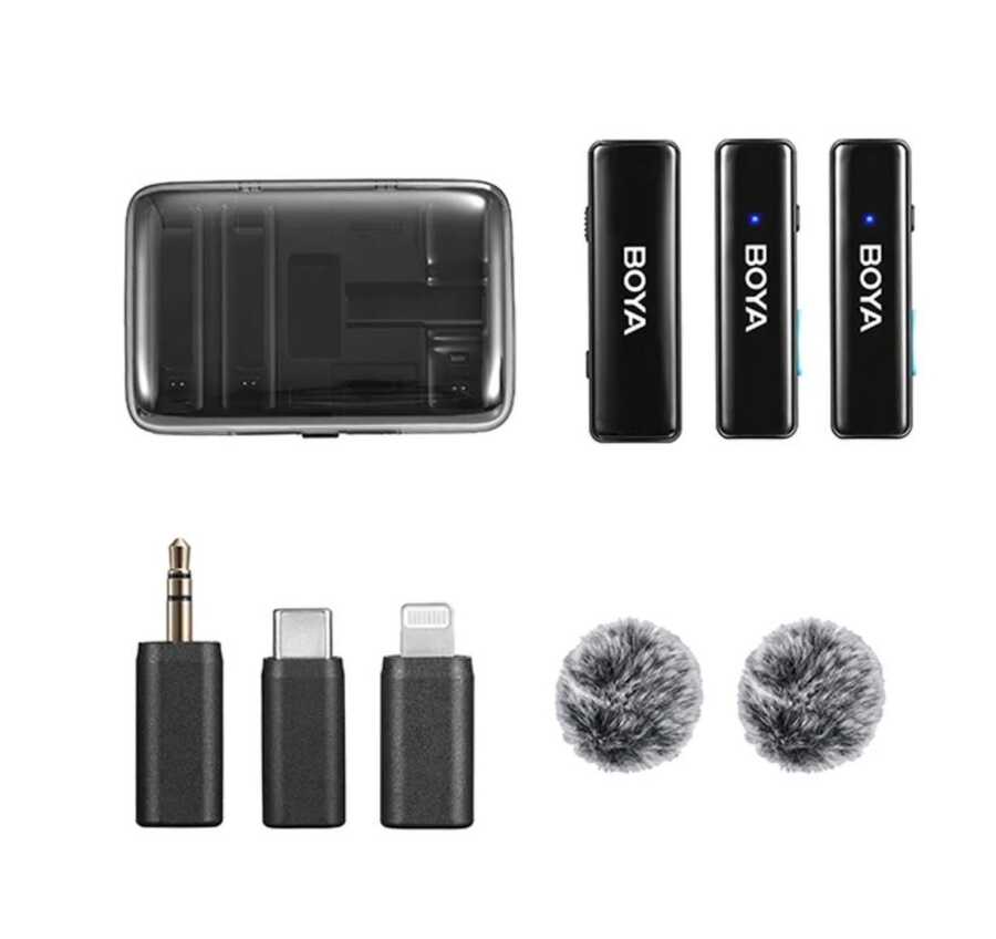 Paket içeriği: 2 adet TX, 1 adet RX, 1 adet şarj kutusu 1 adet 3.5mm TRS Konnektör, 1 adet Lightning konnektör, 1 adet USB-C konnektör, 1 adet USB-C şarj kablosu, 2 adet mikrofon tüyü.