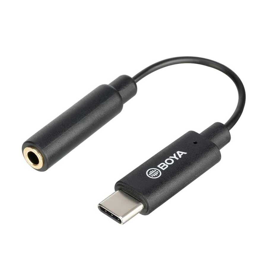 Boya BY-K4 mikrofon dönüştürücü kablo, type-c girişi bulunan ve type-c ses girişini destekleyen notebook ve telefon benzeri cihazlarınıza standart 3.5mm jaklı TRS bağlantılı mikrofonları bağlamanızı sağlar.