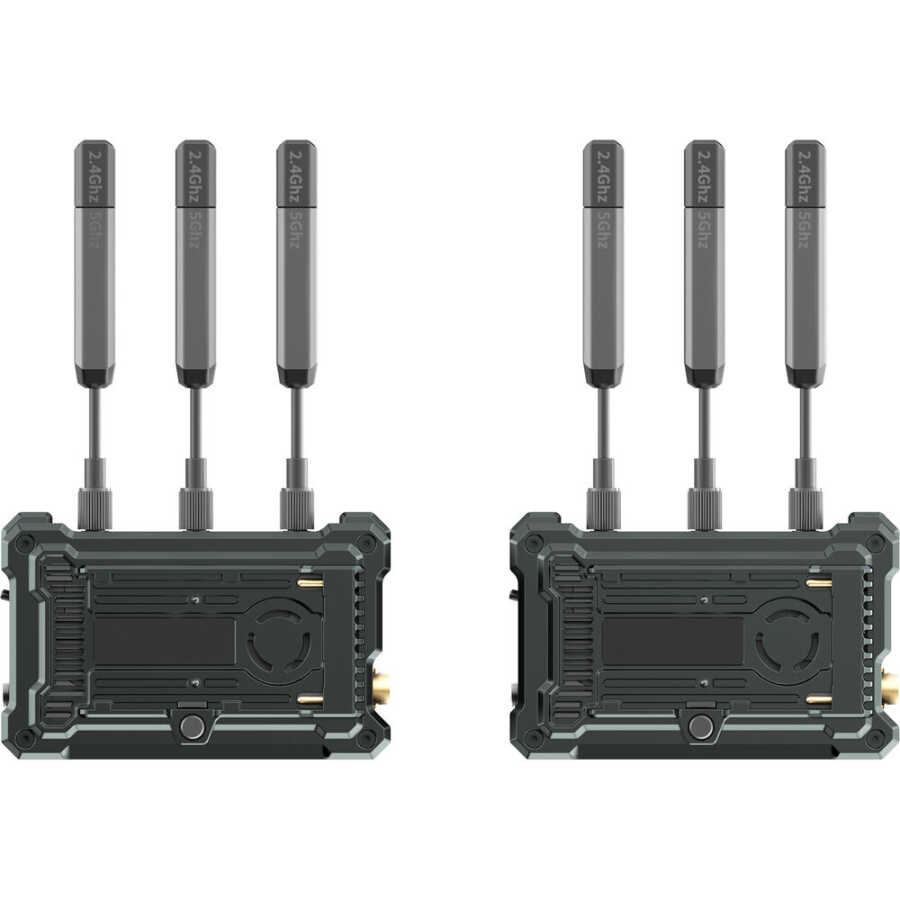 Hollyland'in çok yönlü Pyro S 4K HDMI/SDI Kablosuz Video İletim Sistemini kullanarak prodüksiyonunuza 4K30 kablosuz video iletimi ekleyin. Sistemde bir kablosuz verici, bir kablosuz alıcı, yedi anten, bir USB-C adaptörü, bir DC güç adaptörü ve ayarlanabilir bir yuva adaptörü yuvası bulunur. Verici, HDMI ve SDI girişleri sağlar ve birlikte verilen alıcıya 1300' mesafeye kadar görüş hattı iletimini kabul eden son derece düşük 50 ms gecikme süresine sahiptir. Dört adede kadar alıcı ve iki mobil cihaz kullanılarak yayın modu kullanıldığında, sistem 650 metreye kadar uzaklığı destekler. Alıcı HDMI ve SDI çıkışları verir.