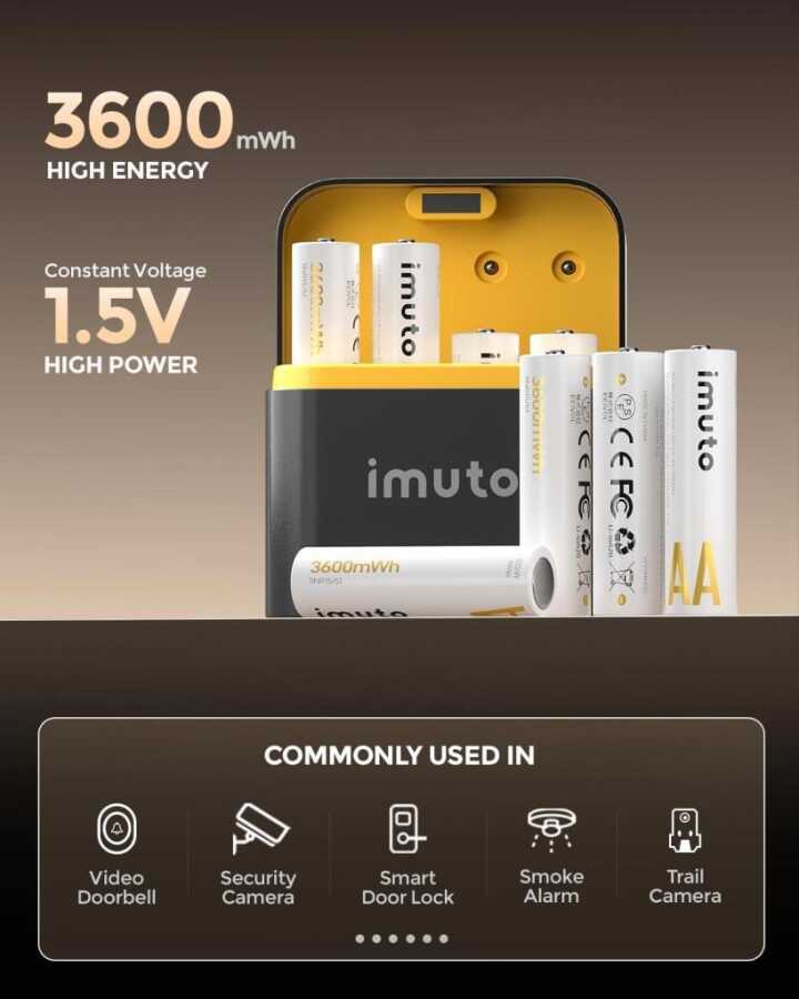- 8 x Imuto 3600 mWh AA Lityum Şarjlı Pil