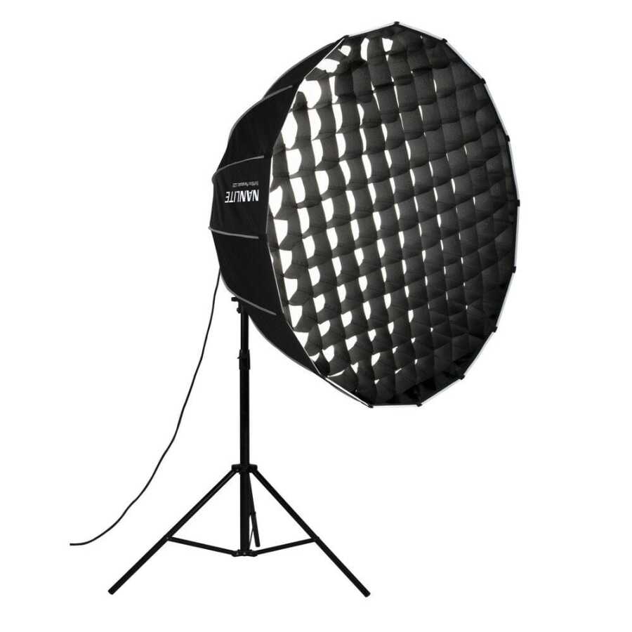 KONTRO EDİN - Para 120 Softbox için Nanlite Kumaş Izgarası (120cm), ışık dökülmesini en aza indirmek ve ışın açısını 60 dereceye sıkarak yönlülük eklemek için softbox'ın önüne monte edilir.