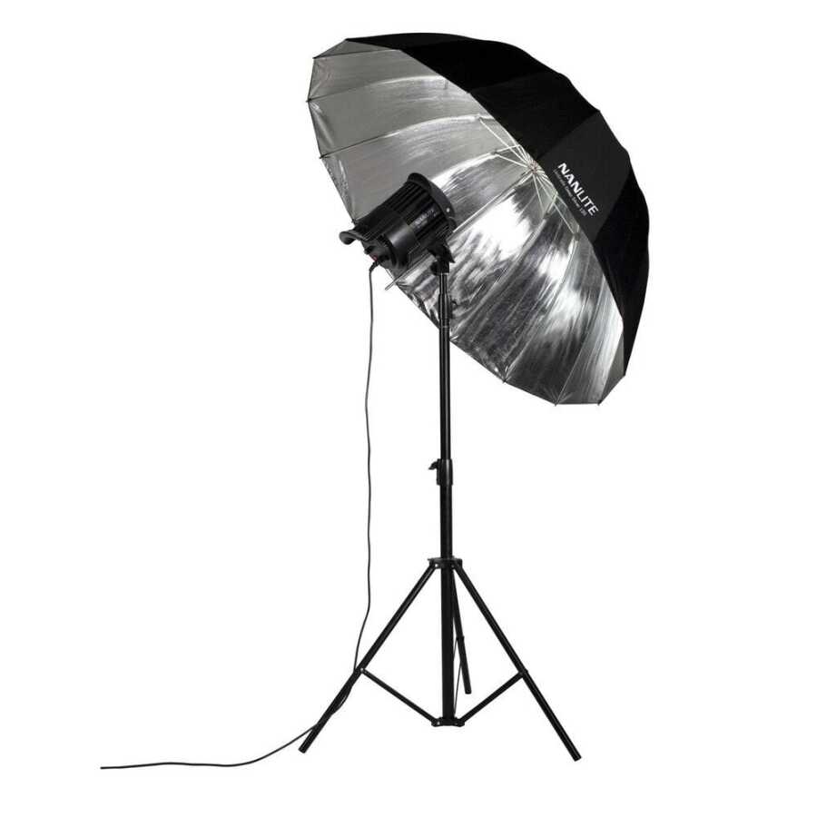 UYUMLULUK - Nanlite'ın P-Seris LED Monolight'ları ile kullanım için tasarlanan Silver Deep Umbrella 135, neredeyse evrensel 8 mm'lik bir şaft kullanır ve onu çoğu LED, flaş ve sabit ışıktaki şemsiye montajlarıyla uyumlu hale getirir.