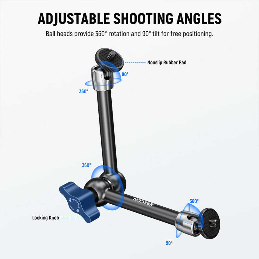 Neewer ST08 Magic Arm (9.8 inç / 25 cm): Ekipmanlarınızı Daha Uzağa, Tam İstediğiniz Açıya Konumlandırın