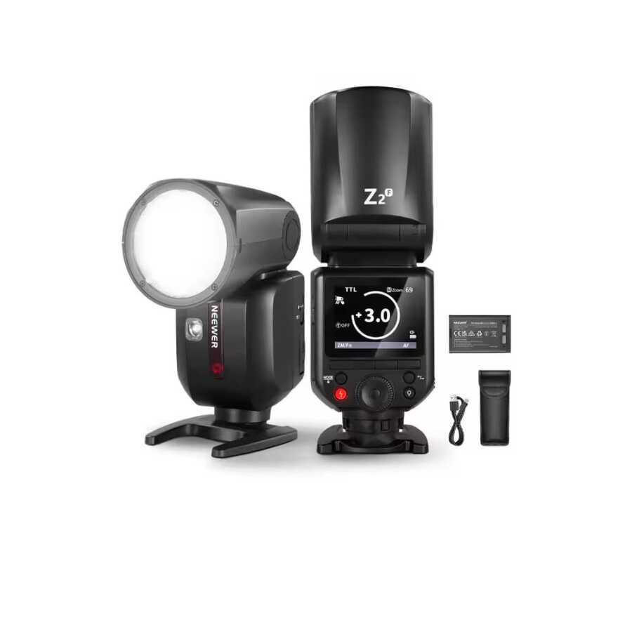 NEEWER Z2PRO-F Fujifilm Uyumlu 76W Yuvarlak Kafa Akülü Tepe Flaşı: Fujifilm Sisteminize Yaratıcı Işık Katın
