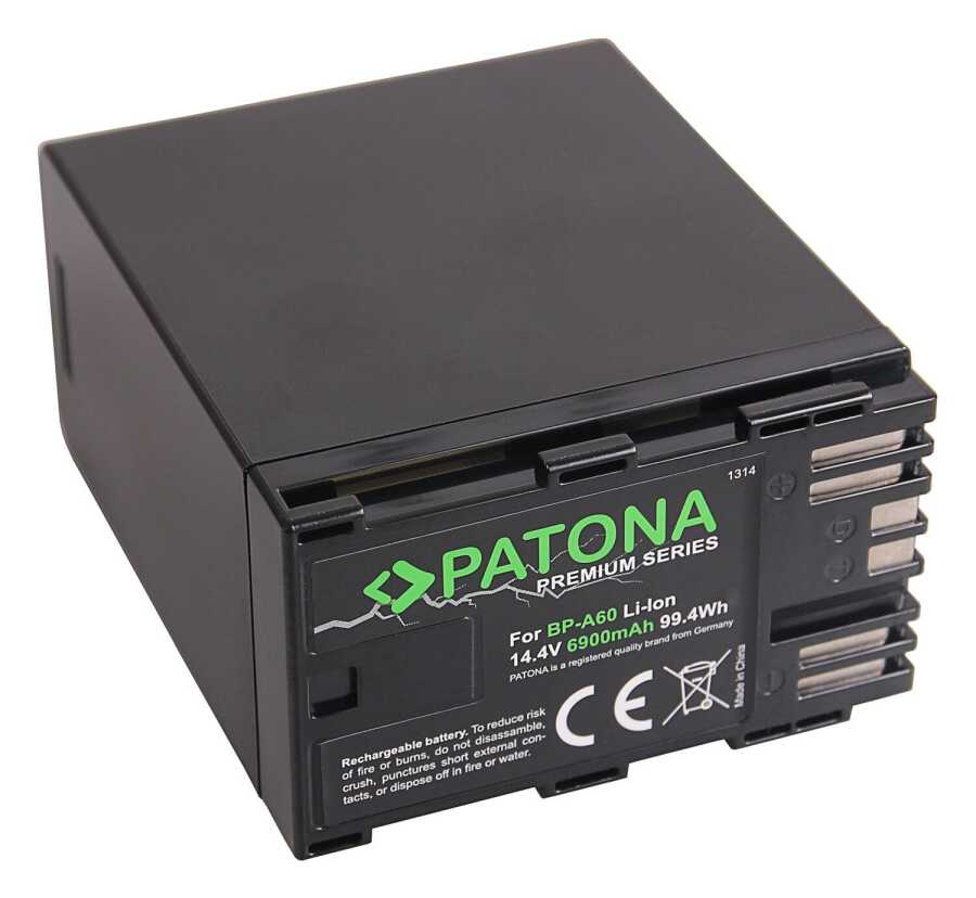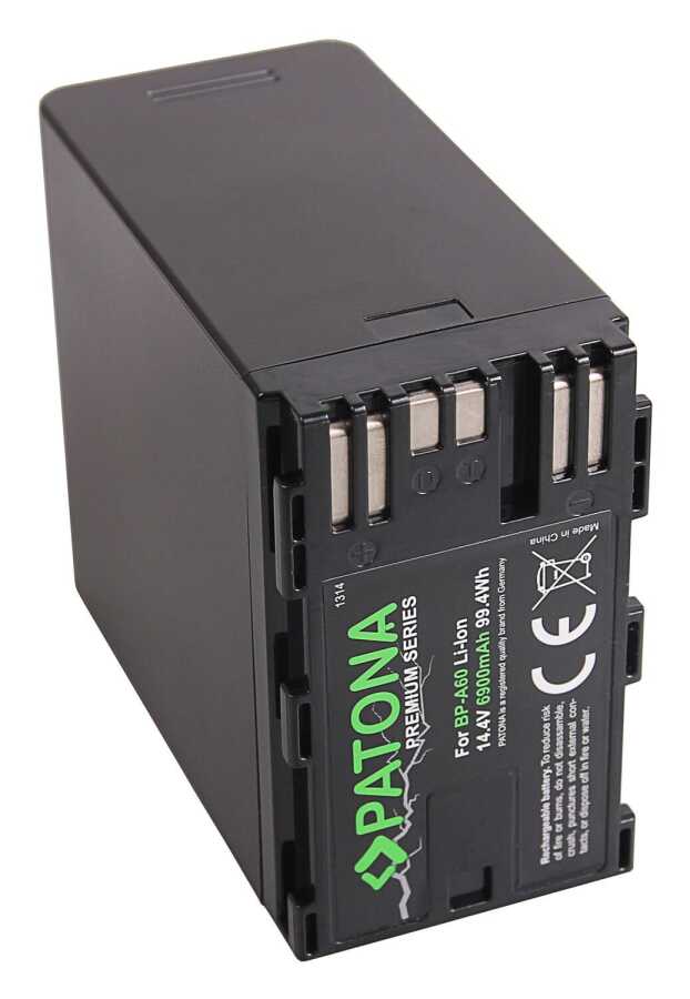 Canon BP-A60 için bu yüksek kaliteli pil, popüler Alman markası PATONA'nın premium serisindendir . Talepkar müşterilerin ihtiyaçlarını karşılamak için geliştirilmiştir. Yeni oluşturulan PATONA Premium serisi, diğerlerinin yanı sıra profesyonel fotoğrafçı segmentini ve uzman fotoğraf dükkanlarını hedefliyor. Özellikle uzun pil ömrü sayesinde, bu birinci sınıf pil, diğer her tür profesyonel kullanım için de tasarlanmıştır.