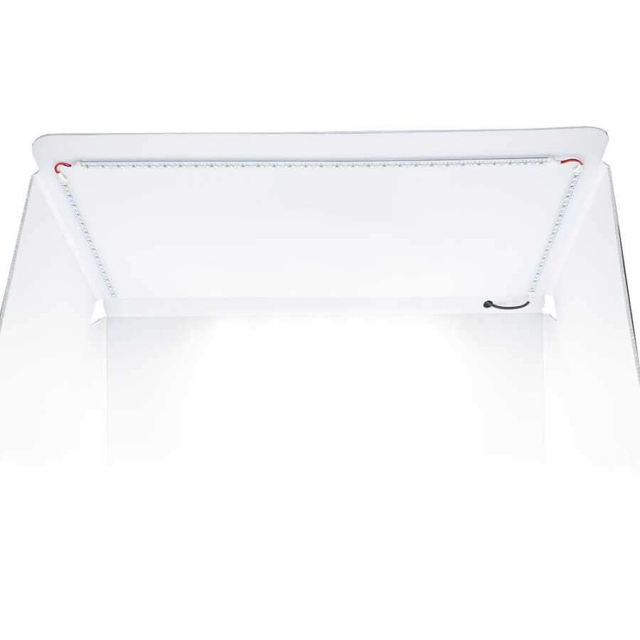 Ürün ön ve yanlar olmak üzere 3 tarafında şerit led bulunan kompakt pratik taşınabilir ürünlerinizi çekmek için tasarlanmış 60cm ölçüsünde ürün çekim çadırıdır. Ürünün güç adaptörü paket içerisinde bulunmaktadır.