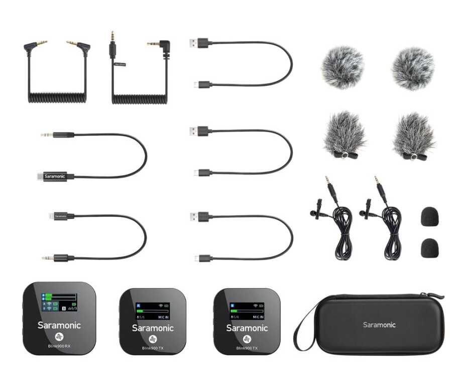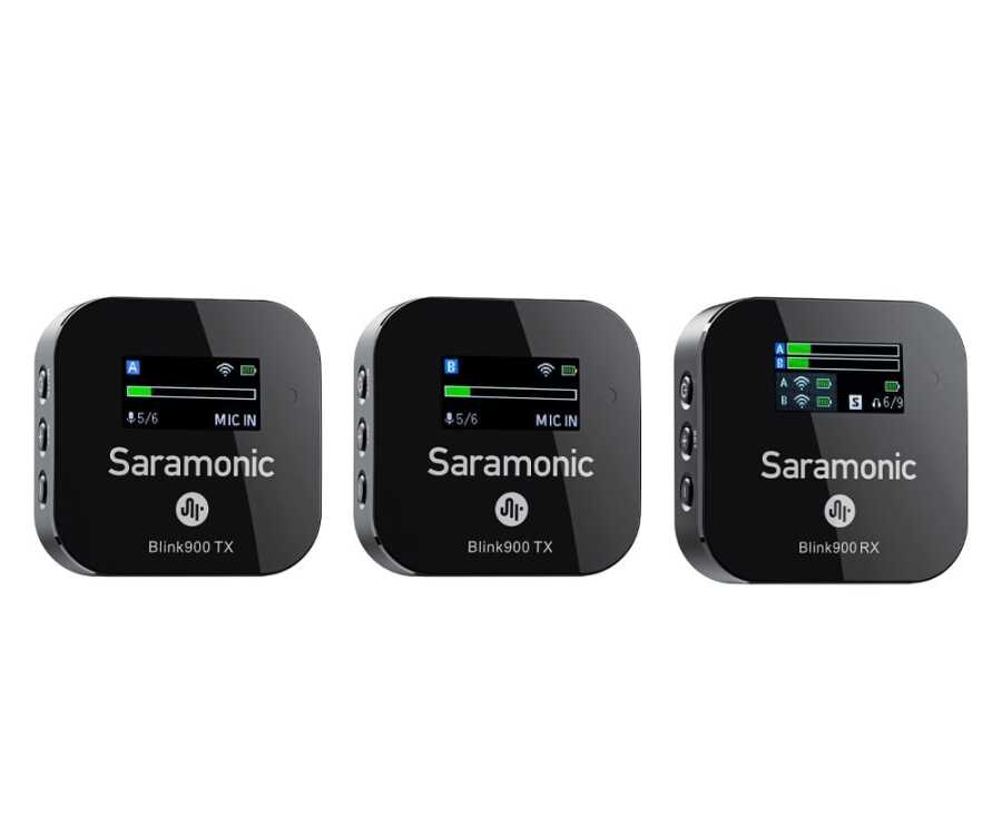 Saramonic Blink900 B2, amiral gemisi düzeyinde özelliklere sahip, 2.4GHz frekans bandında çalışan çift kanallı bir kablosuz mikrofon sistemidir. Bir alıcı (RX) ve iki vericiden (TX) oluşan bu set, aynı anda iki kişiyi yüksek sadakatle kaydetmek için optimize edilmiştir.