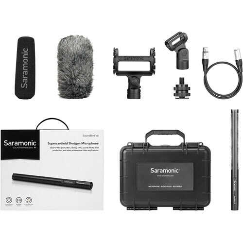 Konum kaydediciler, ses tasarımcıları ve film yapımcıları için eksiksiz bir mikrofon çözümü olan Saramonic SoundBird V6, iç veya dış mekanlarda net ve doğal konuşma, diyalog, foley ve ses efektlerini kolayca yakalamak üzere tasarlanmış bir XLR yaka mikrofonudur. Kısa XLR kablosundan sızdırmaz kasanına kadar, bir sonraki bağımsız film, belgesel veya ses toplama projesiniz için hemen çekime başlamak için gereken tüm araçları sağlamak için bir dizi aksesuar içerir. SoundBird V6, XLR'li bir kameradan veya kayıttan sağlanan +48V phantom güç ile çalıştırılabilir. Orta hassasiyetine sahip olan V6, harici mikrofon ön amplileri veya yüksek kazançlı karıştırıcılarla en iyi performansı sunar. 9.9" uzunluğundaki SoundBird V6, bir boom pole veya standda kullanım için uygun olup, hatta bir kamera ayakkabısına monte edilebilir. Dahil edilen şok emici titreşim ve kamera/boom pole tutma gürültüsünü engeller, temiz ses kaydı sağlar. Mikrofon, iç mekanlarda veya yüksek rüzgar ortamlarında dış mekanlarda kayıt yapmak için iki tür rüzgar koruması ile birlikte gelir.