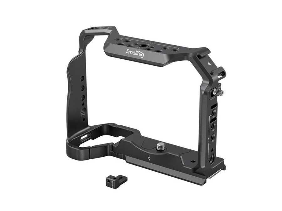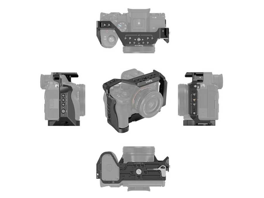 Sony Alpha 7R V / Alpha 7 IV / Alpha 7S III / Alpha 1 / Alpha 7R IV 3667B için SmallRig Tam Kafes aksesuar bağlantıları sağlamak ve kamerayı korumak için tasarlanmıştır. Kamerayı bir alt yerleştirme pimi, bir 1/4"-20 vida ve sol taraftaki bir M2.5 vida ile kilitler. Yan kilit adaptörlerinin farklı kamera tiplerine uyması için montaj yönünde ayarlanması gerekir, "A7 IV" ile basılanlar Alpha 7 IV ve Alpha 7R V içindir, "A7S III/A1" ile basılanlar ise Alpha 7S III / Alpha 1 / Alpha 7R IV içindir. Dahili çok yönlü koruyucu ara parçalar kameranın çizilmesini önler. Kafes arayüzlere, kadranlara, düğmelere veya pil kapaklarına erişim sağlar. Pil bölmesinde kameranın eğrisine uyan ve rahat bir kavrama için küçük bir parmak için yer bırakan bir mil anahtarı bulunur. 1/4"-20 dişli delikler, ARRI 3/8" -16 yerleştirme delikleri ve soğuk ayakkabı montajları üst tutacak 2165C , yan tutacak 2093 , monitör montajı 2903 , mikrofonlar, LED ışıklar, monitörler vb. destekler. Alt OD soket desteği QD omuz askısı. Alttaki Arca-Swiss hızlı çıkarma plakası DJI RS 2 / RSC 2 / RS 3 / RS 3 Pro ile uyumludur, sabitleyici çekimleri için DJI RS 2 / RSC 2 sabitleyicilerinin hızlı çıkarma plakası (yükseltici plaka) ve Arca-Swiss hızlı çıkarma plakası 3154. İsteğe bağlı HDMI Kablo Kelepçesi 3000, arayüzleri korumak ve çekim sırasında kararlı sinyal iletimi sağlamak için Alpha 7R V / Alpha 7 IV / Alpha 7S III ile çalışır. Kafesin yanlarındaki ve altındaki delikler, el askısı PAC2456 ve omuz askısı PSC2428 gibi aksesuarların takılmasına olanak tanır . Ayrıca, kafes sökme ve takmayı kolaylaştıran yerleşik bir manyetik anahtarla birlikte gelir.