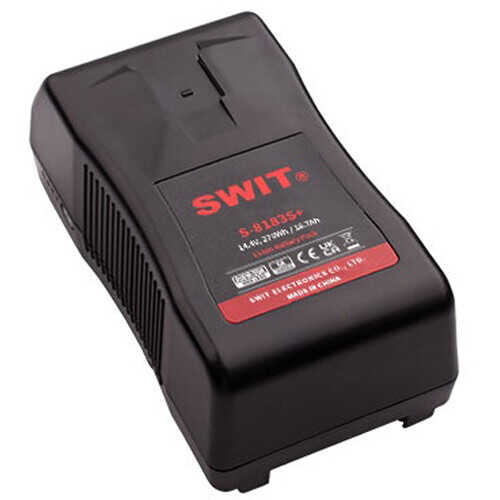 SWIT'in V-mount S-8183S+ 14,4V 270Wh Yüksek Yük Li-Ion Pil ile güç tüketen sinema ekipmanlarınıza yüksek kapasiteli bir pil ekleyin. Bu pil, V-mount ve 270Wh kapasite, 14,4V çıkış sunar ve 250W, 20A sabit çekiş sağlar. Çok sayıda özellik arasında 4 aşamalı LED kapasite durum göstergesi, 14,4V D-Tap güç çıkışı ve ekipmanınızı güvende tutmak için devre koruması bulunur.