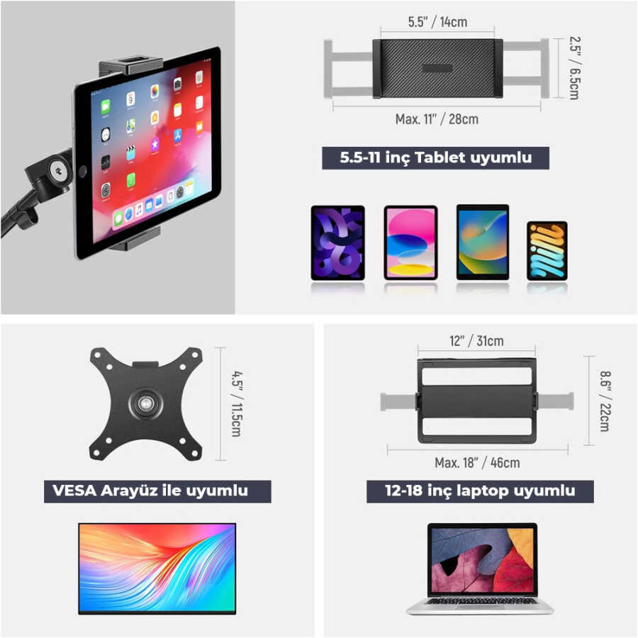 | Laptop/Tablet Uyumluluğu | Laptop: 12"-18" / Tablet: 5.5"-1" |