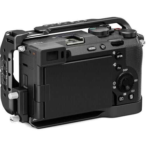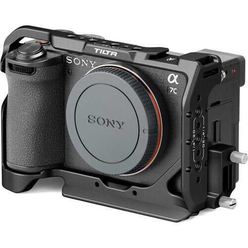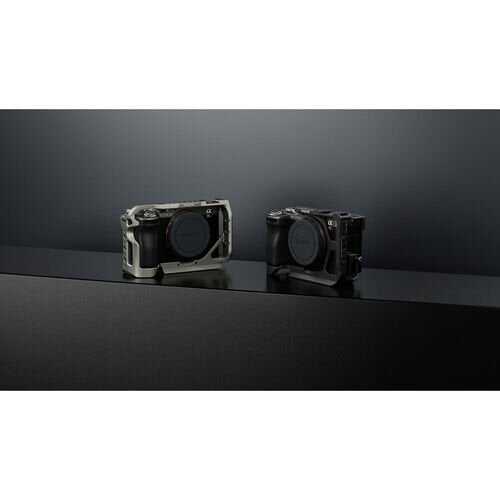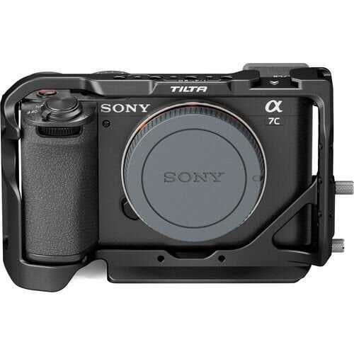 Sağlam ve vücuda oturan bir tasarıma sahip bu siyah Tam Kamera Kafesi, Tilta<'dan a i=4>, Sony a7C II veya a7CR aynasız fotoğraf makinenizi korur ve bir ayakkabı yuvası, birden fazla 1/4"-20 bükülme önleyici aksesuar dişi, bir HDMI kablo kelepçesi, bir yan NATO rayı, iki ön lens adaptörü dişi ve bir adet kayış yuvası.