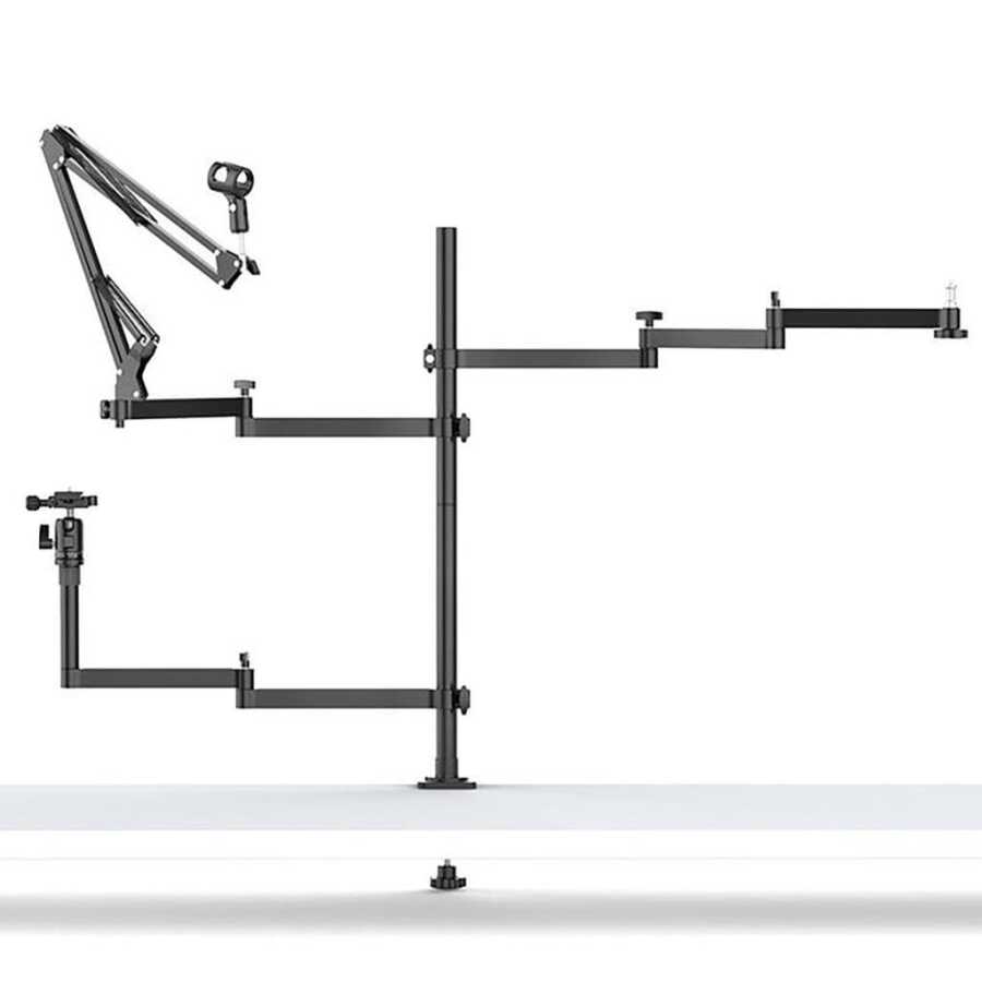Ulanzi 2089 Universal Masaüstü Canlı Yayın Standı stüdyo kayıt ortamlarında veya evde kullanabileceğiniz çok amaçlı masa tipi canlı yayın standıdır. 3 kol tasarımıyla fark yaratan Masaüstü Canlı Yayın Standına, mikrofon, ışık, telefon, tablet v.b. cihazlar da bağlayabilirsiniz.