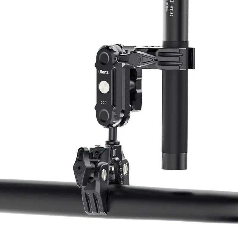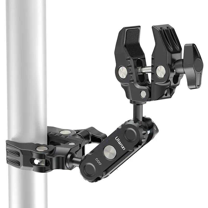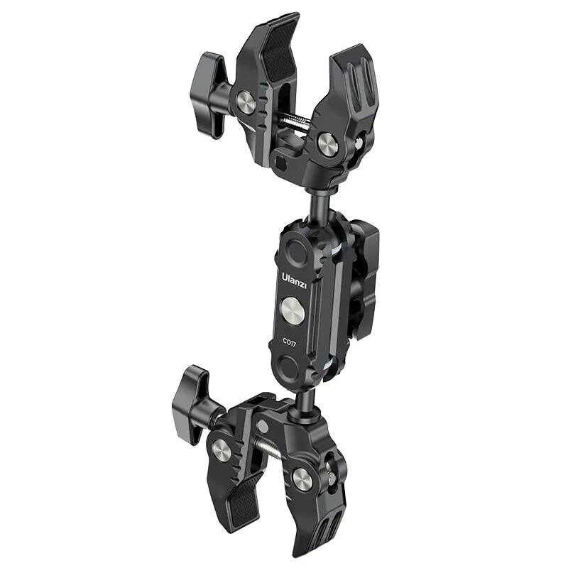 Ulanzi CO17 Çift Yönlü Sihirli Kollu Süper Kelepçe. Bu çok yönlü Süper Kelepçe motosikletlere, bisikletlere, tripodlara, masalara ve daha fazlasına kolayca takılır. Kaymayı önleyici tasarımı, 0,47 ila 2,28 inç genişliğindeki yüzeylerde güvenli bir tutuş sağlar. Çift bilyalı başlık, esnek 360° ayarlamalar sunarak çok yönlü atış açıları sağlar. 3,5 kg'lık yük kapasitesiyle seçeneklerinizi genişletmek için top başlıklarını değiştirebilirsiniz. Hafif ancak dayanıklı alüminyum alaşımdan yapılmıştır, seyahat ve günlük kullanım için mükemmeldir.Süper esneklik için Süper Kelepçe.