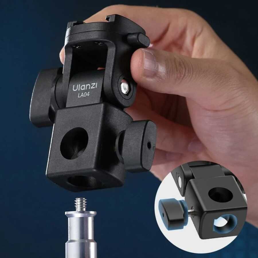 Ulanzi LA04 Evrensel Işık Standı Adaptörü, 1/4" Soğuk Ayakkabı Montajı, Telefon Standı, DSLR Kamera LED Işık 180° Eğilimli Aydınlatma için