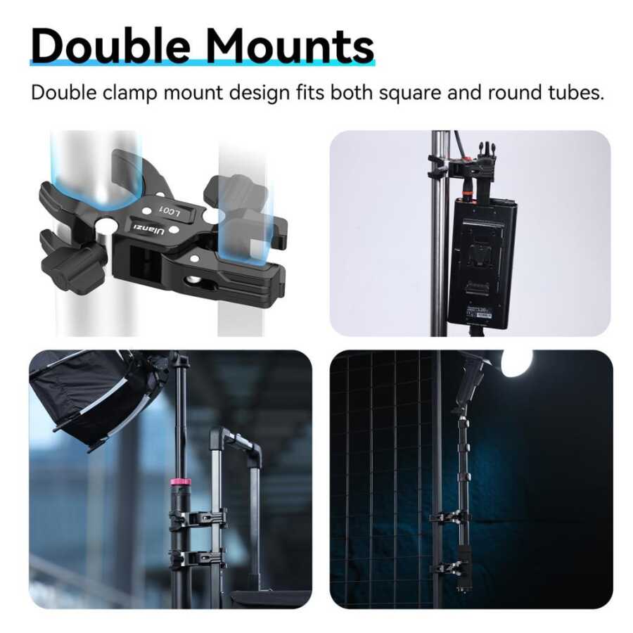 Ulanzi LC01 Super Clamp, fotoğrafçılar ve video içerik üreticileri için vazgeçilmez bir aksesuardır. Sağlam yapısı ve çok yönlü kullanımıyla, ışık standları, kameralar, mikrofonlar ve diğer ekipmanlar için güvenilir bir tutuş sağlar.