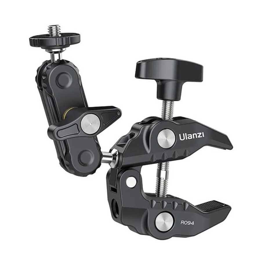 Ulanzi R094; dayanıklı alüminyum alaşımdan üretilmiş, bir ucunda güçlü bir kıskaç (clamp), diğer ucunda ise 360 derece dönebilen bir magic arm ball head bulunan hibrit bir sabitleme çözümüdür.