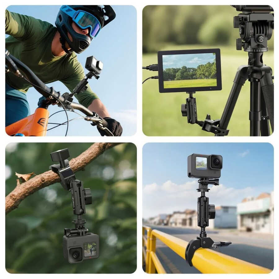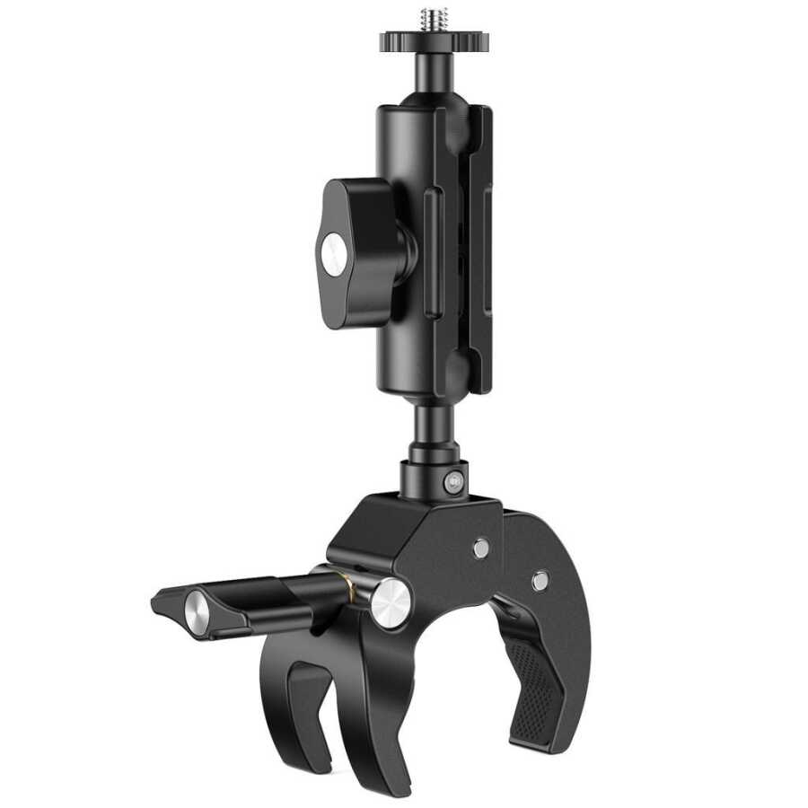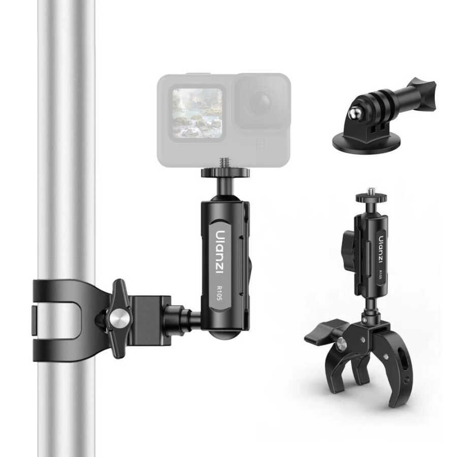 Ulanzi R105, bisiklet, motosiklet, masalar veya benzeri boru ve düz yüzeylere güçlü, stabil ve esnek montaj imkânı sunan yüksek kaliteli metal gövdesiyle profesyonel içerik üreticileri için tasarlanmış bir kelepçe sistemidir. Y-formundaki çenesi, kaymaz kauçuk pedleri, 360° çift toplu başlığı ve 1 kg taşıma kapasitesiyle her açıdan güvenli kullanım sağlar.